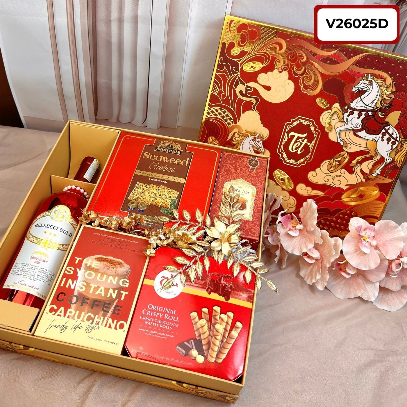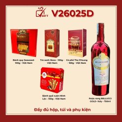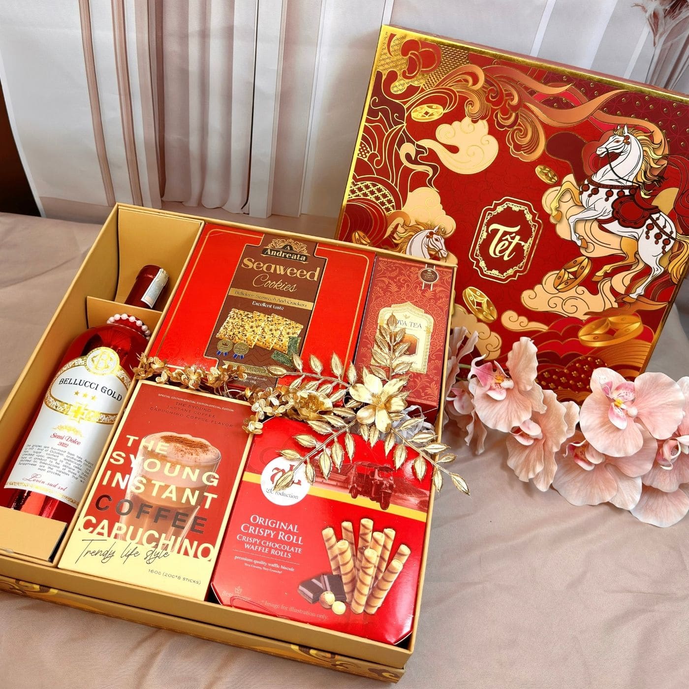 Mỗi sản phẩm bên trong hộp quà đều được tuyển chọn kỹ lưỡng, đảm bảo sự hài hòa giữa hương vị quốc tế và nét tinh túy của đặc sản Việt: