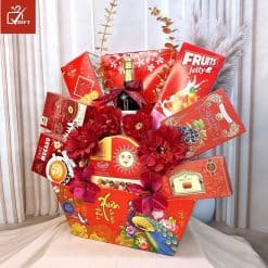 Khoác lên mình sắc đỏ may mắn nồng nàn, Giỏ quà Tết V26068D là lời chúc “Vạn Sự Như Ý – Đắc Lộc Thành Công” gửi gắm đến người nhận. Với thiết kế giỏ đựng mang phong cách thuyền hoa truyền thống kết hợp hình ảnh chim công cao quý, đây không chỉ là món quà tặng mà còn là một tác phẩm trang trí rực rỡ cho không gian phòng khách ngày Tết.