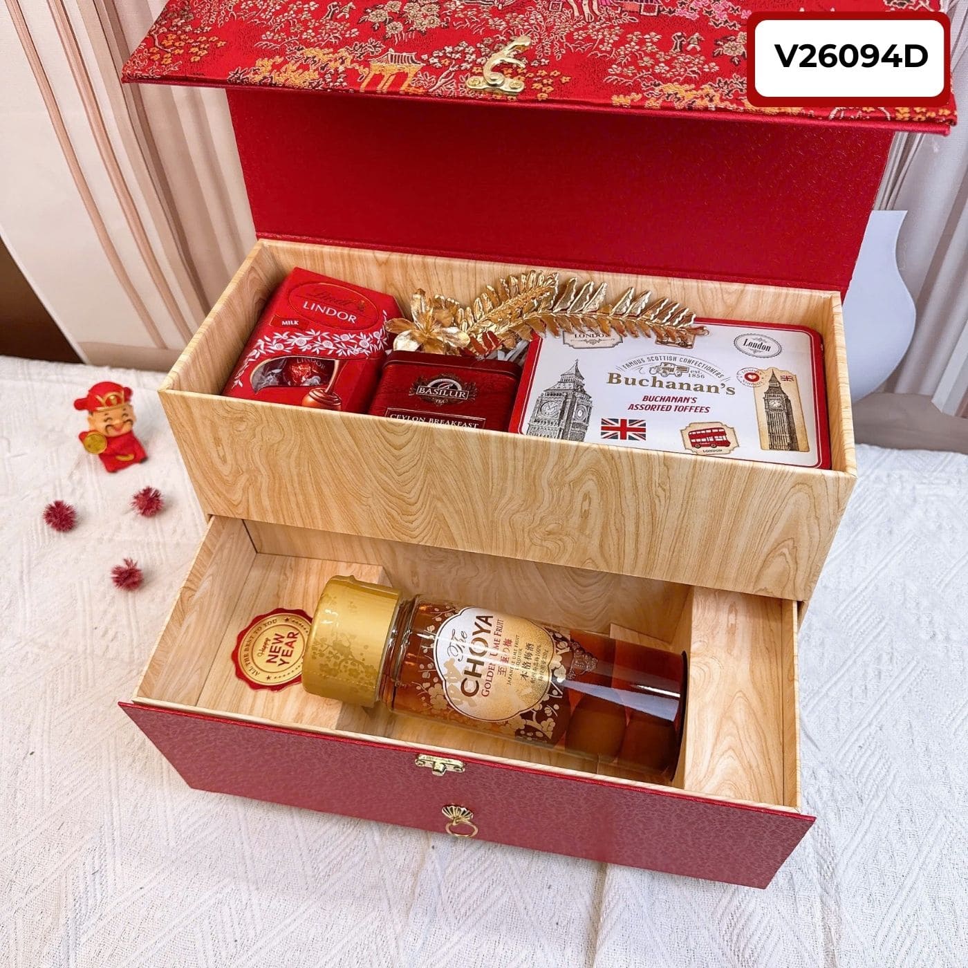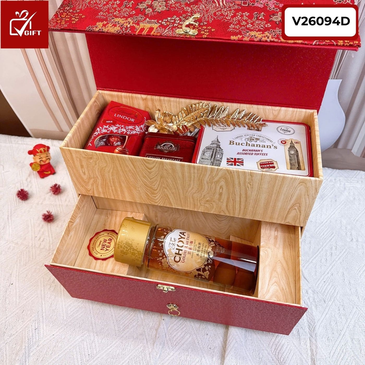 🌸 Chi Tiết “Ngũ Quốc Tinh Hoa” Trong Set Giỏ Quà Tết V26094D