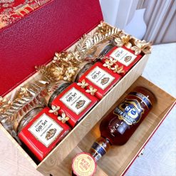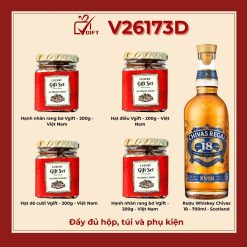 Rượu Whiskey Chivas Regal 18 (700ml): Trái tim của set quà chính là dòng Whiskey danh tiếng đến từ Scotland. Với hương vị đa tầng, êm mượt và sâu lắng, đây là sự lựa chọn đẳng cấp để khai mở những câu chuyện đầu xuân.