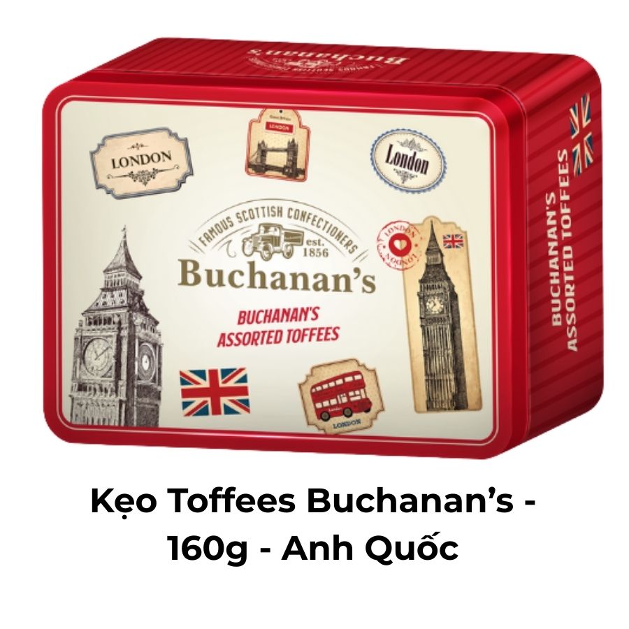 Kẹo Toffees Buchanan 160g, đến từ Anh Quốc, là món quà ngọt ngào cho những tín đồ yêu thích hương vị caramel đậm đà. Với lớp vỏ ngoài cứng, bên trong là nhân mềm mịn, kẹo mang đến trải nghiệm thú vị, béo ngậy nhưng không quá ngọt. Sản phẩm được chế biến từ nguyên liệu cao cấp, đảm bảo chất lượng và hương vị tuyệt hảo. Đóng gói tiện lợi, kẹo Toffees Buchanan là lựa chọn lý tưởng cho các buổi tiệc, tụ tập bạn bè hay làm quà biếu cho người thân. Mỗi viên kẹo là một niềm vui ngọt ngào.
