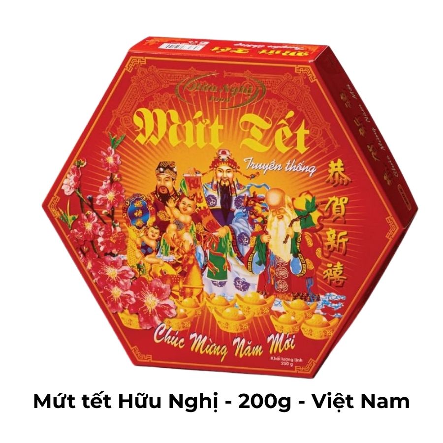 Mứt Tết Hữu Nghị 200g là món mứt truyền thống nổi bật trong mỗi dịp Tết cổ truyền Việt Nam, mang đến hương vị ngọt ngào, thơm ngon. Sản phẩm được chế biến từ các loại trái cây tươi ngon như mứt gừng, mứt dừa, mứt quất, với công thức đặc biệt giữ nguyên hương vị tự nhiên và độ giòn, ngọt vừa phải. Đóng gói 200g tiện lợi, mứt Tết Hữu Nghị là lựa chọn hoàn hảo để thưởng thức trong những ngày Tết hoặc làm quà biếu, thể hiện sự tinh tế và lòng hiếu khách của người Việt.